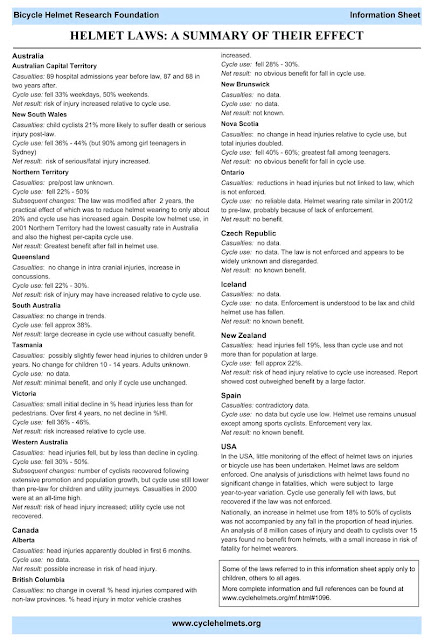Σε 21 πολιτείες της Αμερικής, στον Καναδά, στην Αυστραλία και τη Ν. Ζηλανδία υπάρχουν νόμοι που υποχρεώνουν τον αστικό ποδηλάτη να φοράει κράνος γιά να είναι «προστατευμένος».