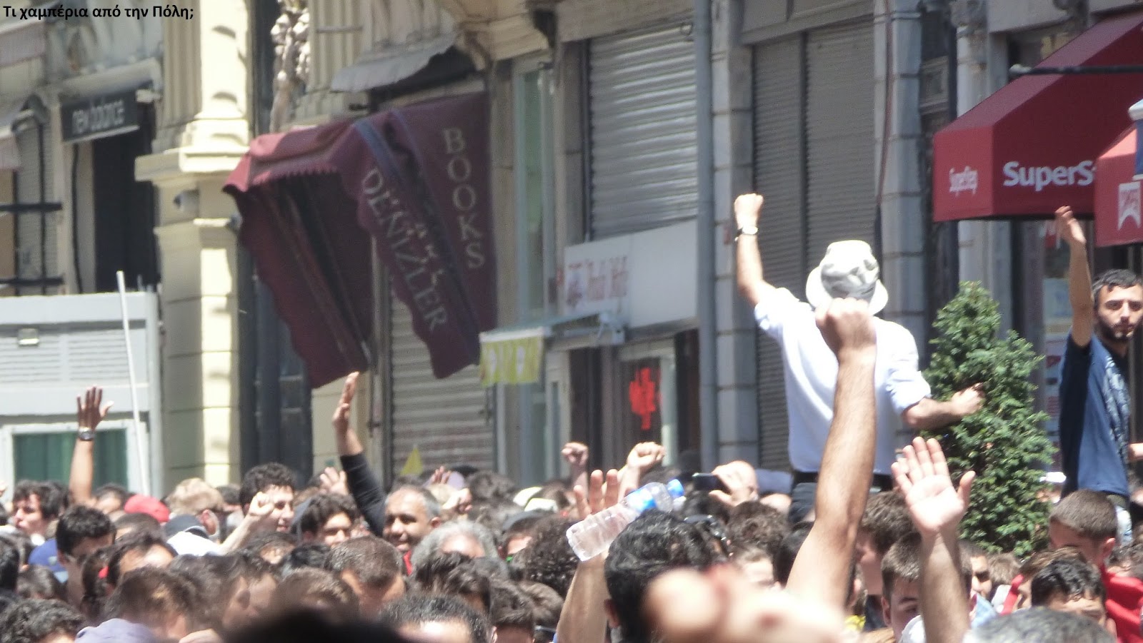 Τα αντανακλαστικά των Τούρκων σε διαδηλώσεις και πορείες είναι κλάσεις δυναμικότερα από τα δικά μας, καθώς παθιάζεται (ή παρασύρεται) πολύ εντονότερα. Δεν περίμενα πάντως να δω τέτοια αγανάκτηση, παλμό, αυθορμητισμό και συμμετοχή. Στο Καντικιόι βέβαια ακόμα δεν έχει ξεκινήσει τίποτα και μόνον ο αποκλεισμός δρόμων, αρκετή αστυνόμευση και οι ετοιμασίες της απογευματινής συγκέντρωσης της αξιωματικής αντιπολίτευσης προμηνύουν το τι θα ακολουθήσει.